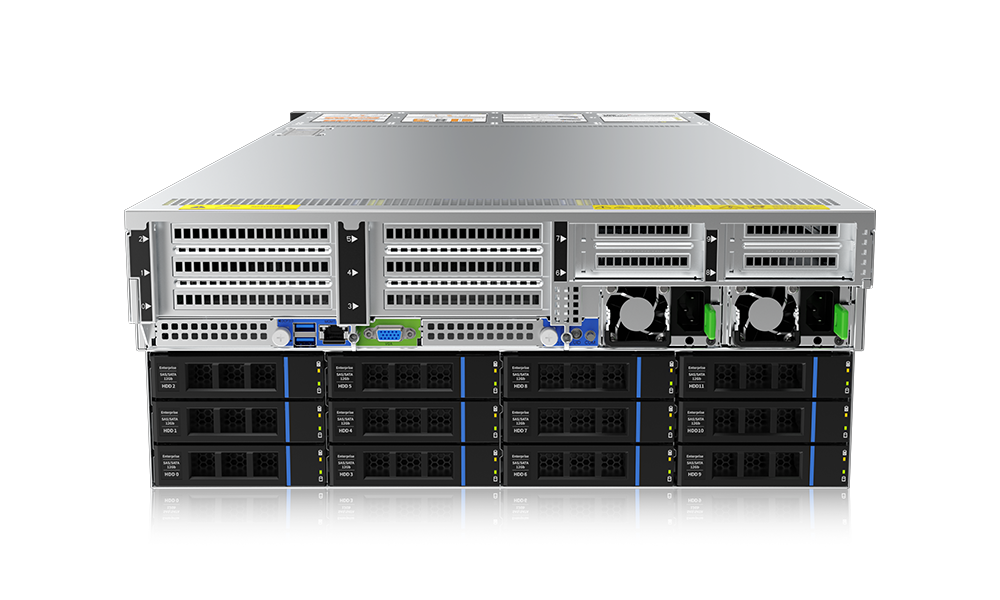 可支持混插36个3.5″/2.5″ SATA/SAS/U.2硬盘,在为用户给予海量的数据存储能力;支持高达10个PCIe5.0标准插槽及2个PCIe5.0 OCP3.0插槽,满足扩展需求